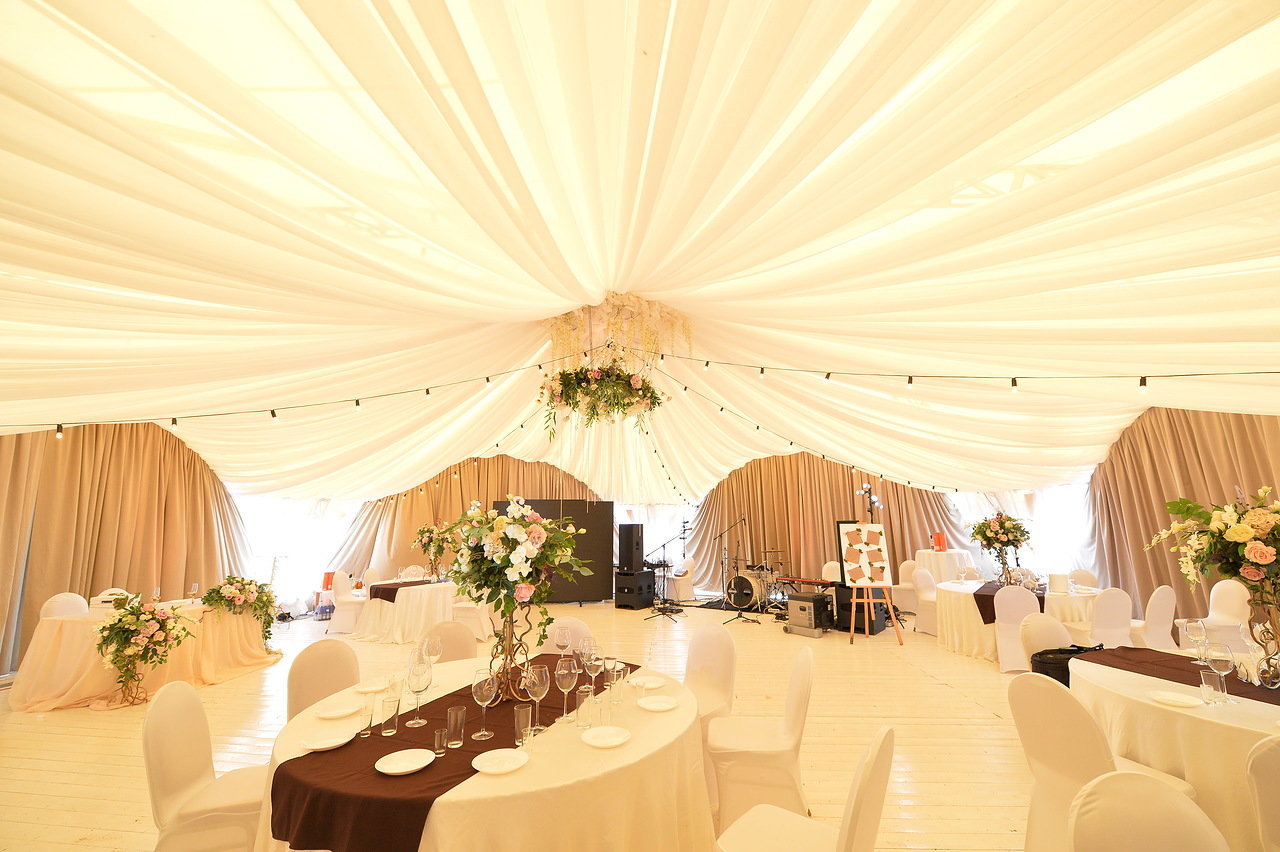Что будет, если поднимется ветер? Есть ли сцена для выступления? Не помешает ли дождь банкету?